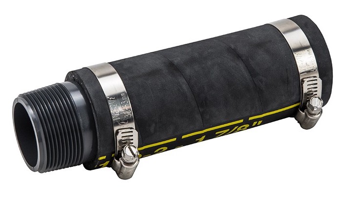 Outlet kit includes flexible hose simplifying installation, stainless steel clamps and galvanized or PVC nipple. Kits sold separately.