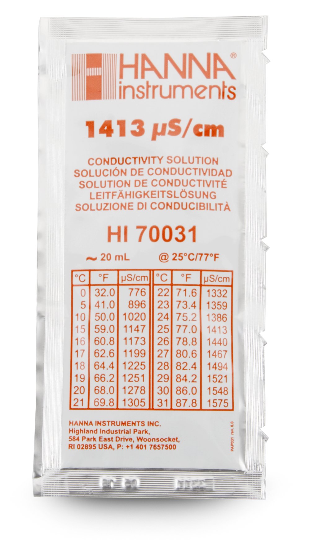 pH 7.01 Calibration Pouch, 20 ml, pkg of 25 |