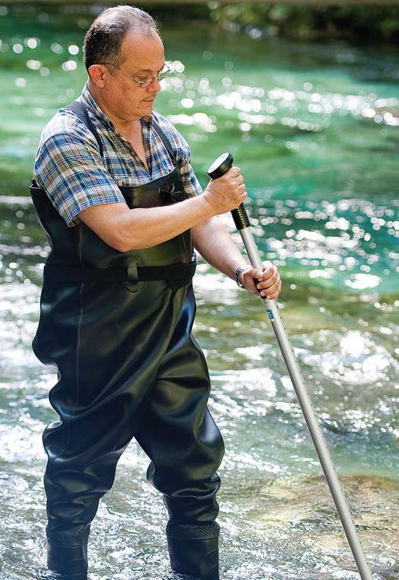 by a towing line. After completing each sampling, simply remove the meter and record the