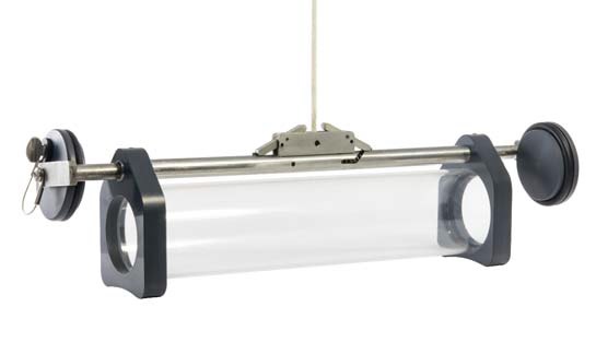 Fee-flushing, this vertical bottle collects water samples at any depth.